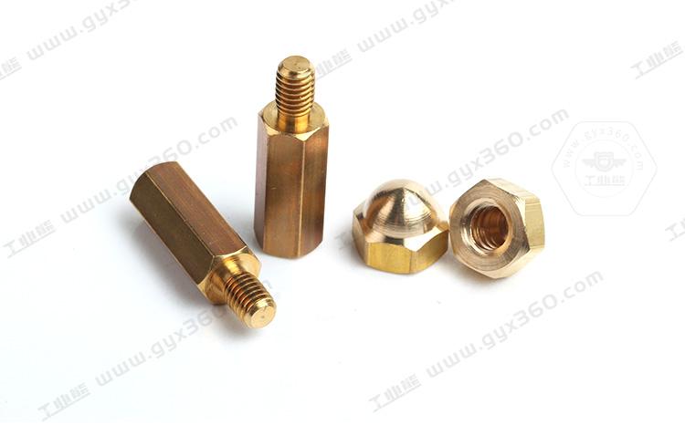 鉛黃銅也是制造一些機加工,自動車削零件的常用黃銅材料。例如C3604,HPb59-1等,因為鉛含量的添加,可以提高其切削性能,同時滿足其性能要求??沙S糜诩庸ゃ~六角支柱,銅陰陽螺絲、銅蓋型螺母等。
