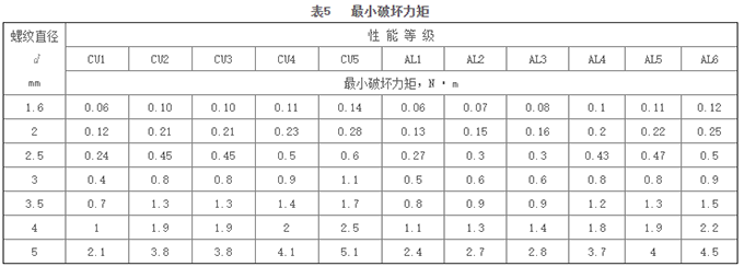 5.3 螺栓、螺釘的蕞小破壞力矩按表5規(guī)定。