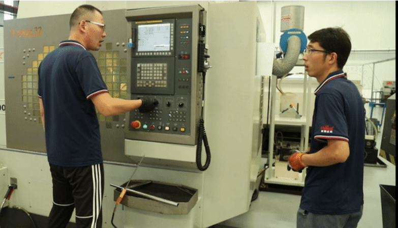 但也不是每一步都很順利,當(dāng)他遇到刀具發(fā)出一聲異響以后,(這聲音小編是一點(diǎn)兒沒(méi)有分辨出)立刻關(guān)停機(jī)器,小跑著找到自己的師傅。他直接說(shuō)明了問(wèn)題后,正在調(diào)機(jī)的師傅立馬來(lái)到他的機(jī)器前,耐心地幫他找出問(wèn)題原因,并且教他如何處理,通過(guò)重新調(diào)試刀具,快速地解決了問(wèn)題,小楊也露出了笑容。