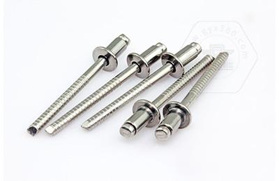 鉚接時,鉚釘釘芯由專用鉚槍拉動,使鉚體膨脹,起到鉚接作用。這類鉚釘特別適用于不便采用普通鉚釘(須從兩面進(jìn)行鉚接)的鉚接場合。故廣泛用于建筑、汽車、船舶、飛機(jī)、電器、家具等產(chǎn)品上。