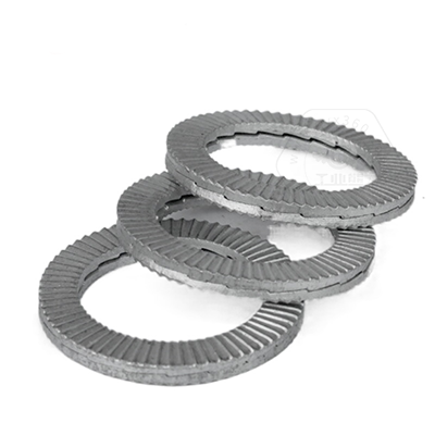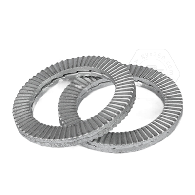 • 產品描述:DIN25201SPS 雙疊自鎖墊圈,也叫碳鋼加大防松鎖緊墊圈、愜入式鎖緊墊圈、雙疊自鎖墊圈抗振防松動墊圈、自動鎖緊功能墊圈、安全鎖緊墊圈、雙層防松墊片、減震墊圈、對鎖墊圈、楔齒墊圈。DIN25201SPS 雙疊自鎖墊圈由二片不同斜紋墊圈組成,組裝時內斜齒面相對,外側放射狀齒面與兩端接觸面形成咬合狀態(tài),當連接件受到振動并產生螺栓松動隱患時,只允許兩個墊片內側的斜齒相對錯動,導致張力升高,從而防止松