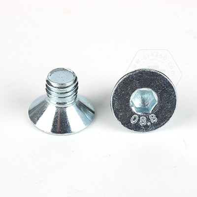 • 碳鋼8.8級藍白鋅內(nèi)六角沉頭螺釘DIN7991